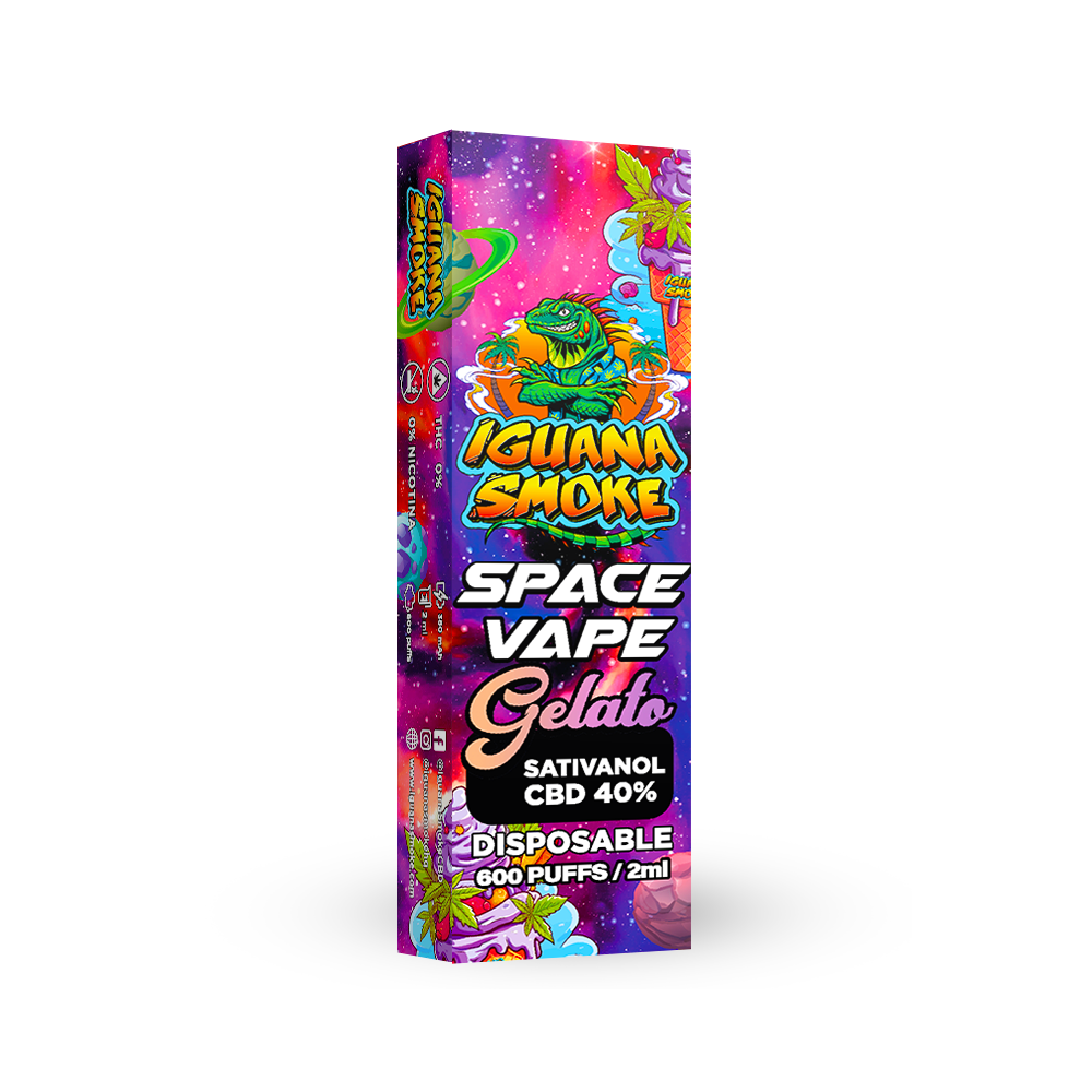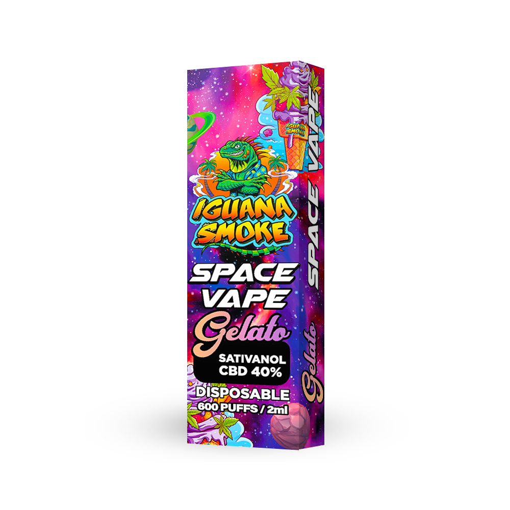 El Space Vape sabor Gelato es un vaper desechable con una combinación exclusiva de STV (Sativanol), CBD al 40% y CBG al 30%, infusionado con terpenos naturales que reproducen el perfil dulce, cremoso y afrutado de la mítica variedad Gelato.